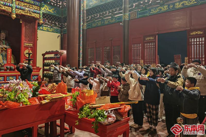 敲响新年祈福钟声 东南网漳州2月1日讯(本网记者 林永清 文/图)“咚咚咚……”除夕之夜,当零点到来,新年祈福的钟声,在漳州长泰文庙响起来了。当晚,长泰文庙举行了一年一度的跨年祈福活动。 除夕当晚,长泰下起了淅沥沥的小雨,气温骤降,但这仍挡不住长泰人民的热情,近百名群众冒雨来到了长泰文庙,准备共同迎接新年的到来,开启新年祝福。